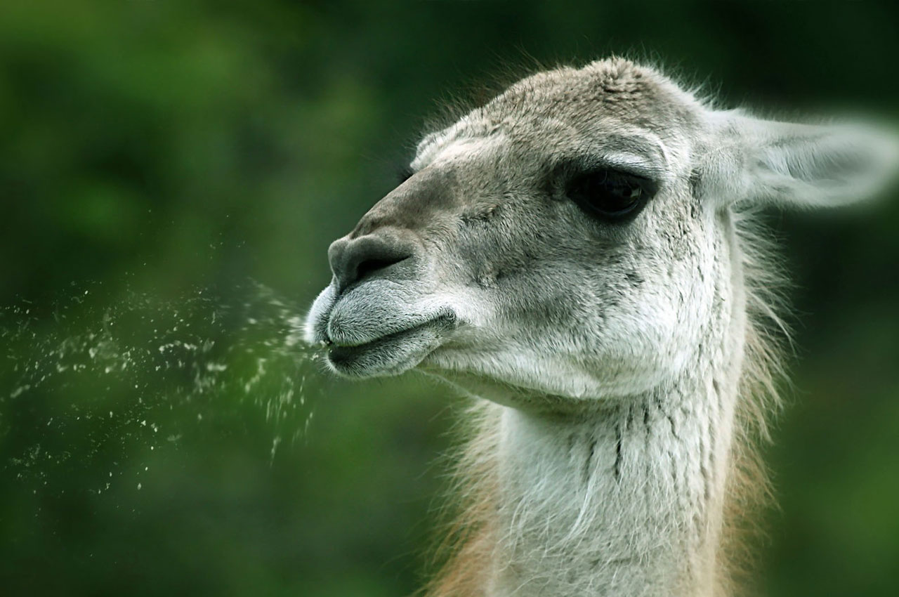 La llama (Lama glama) adopta un comportamiento muy singular cuando es molestada o acosada.
